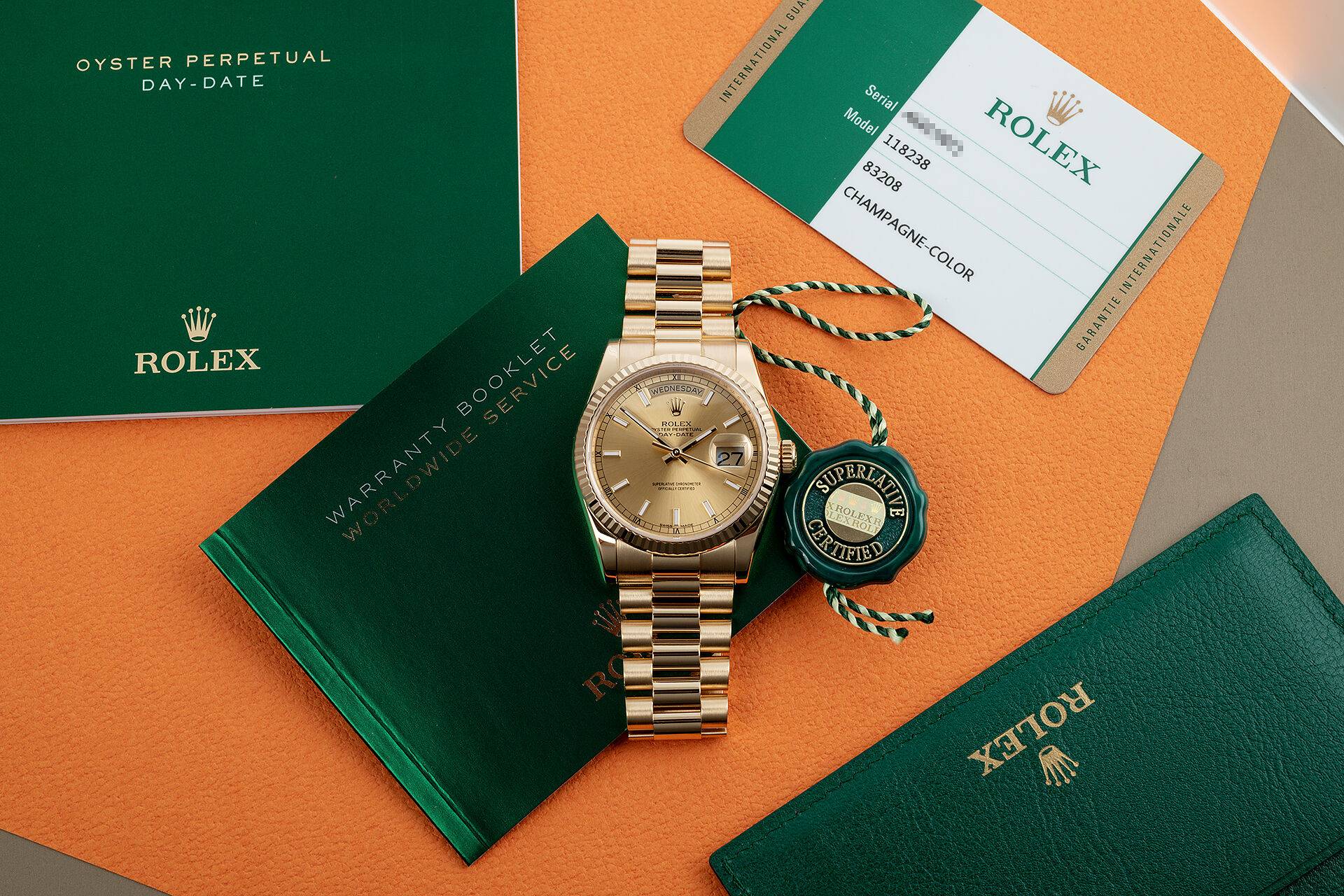 CHAMPAGNE-COLOUR DIALThe dial is the distinctive face of a Rolex watch, the feature most responsible for its identity and readability. Characterised by hour markers fashioned from gold to prevent tarnishing, every Rolex dial is designed and manufactured in-house, largely by hand to ensure perfection.  THE FLUTED BEZELThe Rolex fluted bezel is a mark of distinction. Originally, the fluting of the Oyster bezel had a functional purpose: it served to screw the bezel onto the case helping to ensure the waterproofness of the watch. It was therefore identical to the fluting on the case back, which was also screwed onto the case for waterproofness, using specific Rolex tools. Over time, the fluting became an aesthetic element, a genuine Rolex signature feature. Today the fluted bezel is a mark of distinction, in gold on this Day-Date 40.  18 CT YELLOW GOLDBy operating its own exclusive foundry, Rolex has the unrivalled ability to cast the highest quality 18 ct gold alloys. According to the proportion of silver, copper, platinum or palladium added, different types of 18 ct gold are obtained: yellow, pink or white. They are made with only the purest metals and meticulously inspected in an in-house laboratory with state-of-the-art equipment, before the gold is formed and shaped with the same painstaking attention to quality. Rolex's commitment to excellence begins at the source.  Why choose us? - We work directly with manufacturers around the world to ensure the best quality of our products . We have a quality control department to help us keep our promises!