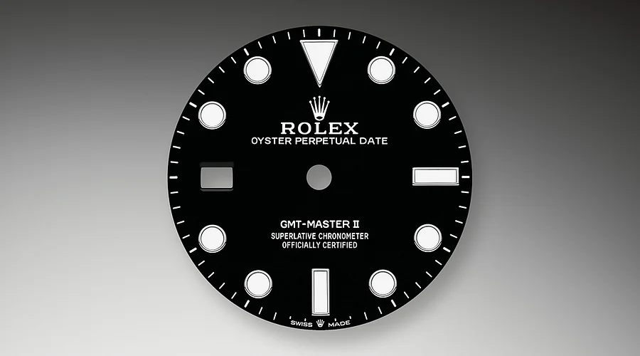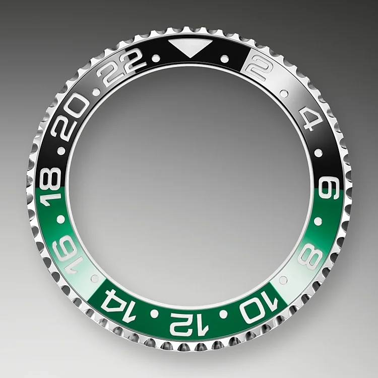 DetailTHE OYSTER PERPETUAL GMT-MASTER II IN OYSTERSTEEL WITH AN OYSTER BRACELET. This model features a black dial and a two-colour Cerachrom bezel insert in green and black ceramic. Designed to show the time in two different time zones simultaneously during intercontinental flights, the GMT-Master II has come to be recognized for its robustness and versatile appearance.  The GMT-Master was made for airborne adventure. Now the watch of choice for travellers, it connects people beyond time zones. INNOVATIVE HIGH-TECHNOLOGYIn addition to conventional hour, minute and seconds hands, the GMT-Master II features an arrow-tipped hand, which circles the dial once every 24 hours, as well as a bidirectional rotatable 24-hour graduated bezel.  BLACK DIALHIGH LEGIBILITY IN ALL CIRCUMSTANCES