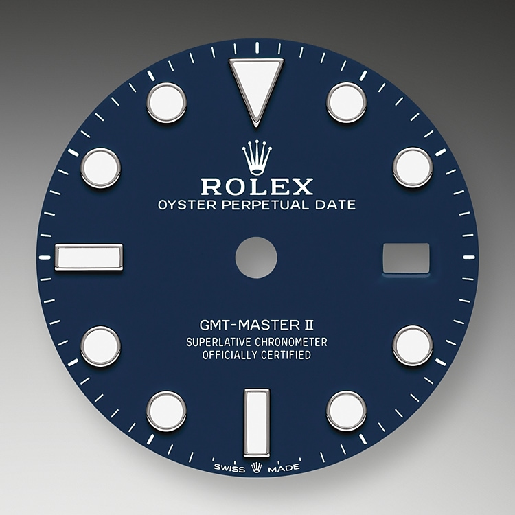 DetailThe Oyster Perpetual GMT-Master II in 18 ct white gold with an Oyster bracelet.  24-HOUR ROTATABLE BEZEL 24-HOUR ROTATABLE BEZEL--------------------------------------------------------------- In addition to conventional hour, minute and seconds hands, the GMT-Master II features an arrow-tipped hand, which circles the dial once every 24 hours, as well as a bidirectional rotatable 24-hour graduated bezel.  MIDNIGHT BLUE DIAL MIDNIGHT BLUE DIAL------------------------------------------------------------------- Like all Professional watches, the GMT-Master II offers exceptional legibility in all circumstances, and especially in the dark, thanks to its Chromalight display. The broad hands and hour markers in simple shapes – triangles, circles, rectangles – are filled with a luminescent material emitting a long-lasting glow.  18 CT WHITE GOLD 18 CT WHITE GOLD------------------------------------------------------------------------ By operating its own exclusive foundry, has the unrivalled ability to cast the highest quality 18 ct gold alloys. According to the proportion of silver, copper, platinum or palladium added, different types of 18 ct gold are obtained: yellow, pink or white. They are made with only the purest metals and meticulously inspected in an in-house laboratory with state-of-the-art equipment, before the gold is formed and shaped with the same painstaking attention to quality. 's commitment to excellence begins at the source.   REFERENCE126719BLROMODEL CASEOyster, 40 mm, white goldBEZELBidirectional rotatable 24-hour graduated bezel. Two-color blue and red Cerachrom insert in ceramic, molded numerals and graduationsWATER-RESISTANCEWaterproof to 100 meters / 330 feetMOVEMENTPerpetual, mechanical, self-winding, GMT functionCALIBRE3285, ManufacturePOWER RESERVEApproximately 70 hoursBRACELETOyster, flat three-piece linksDIALMidnight blue REFERENCE126719BLROMODEL CASEOyster, 40 mm, white goldBEZELBidirectional rotatable 24-hour graduated bezel. Two-color blue and red Cerachrom insert in ceramic, molded numerals and graduationsWATER-RESISTANCEWaterproof to 100 meters / 330 feetMOVEMENTPerpetual, mechanical, self-winding, GMT functionCALIBRE3285, ManufacturePOWER RESERVEApproximately 70 hoursBRACELETOyster, flat three-piece linksDIALMidnight blue  CERTIFICATION   Why choose us? Why choose us?- We work directly with manufacturers all over the world to ensure the best quality of our products. We have Quality Control department which help us to keep our promise!